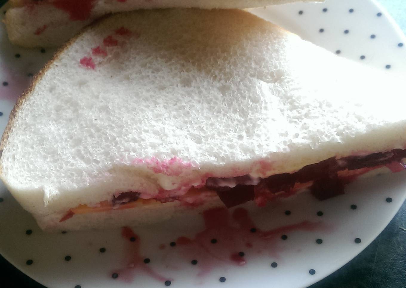 - Top with remaining slice of bread and get Ur vampire teeth stuck into this bloody sambo