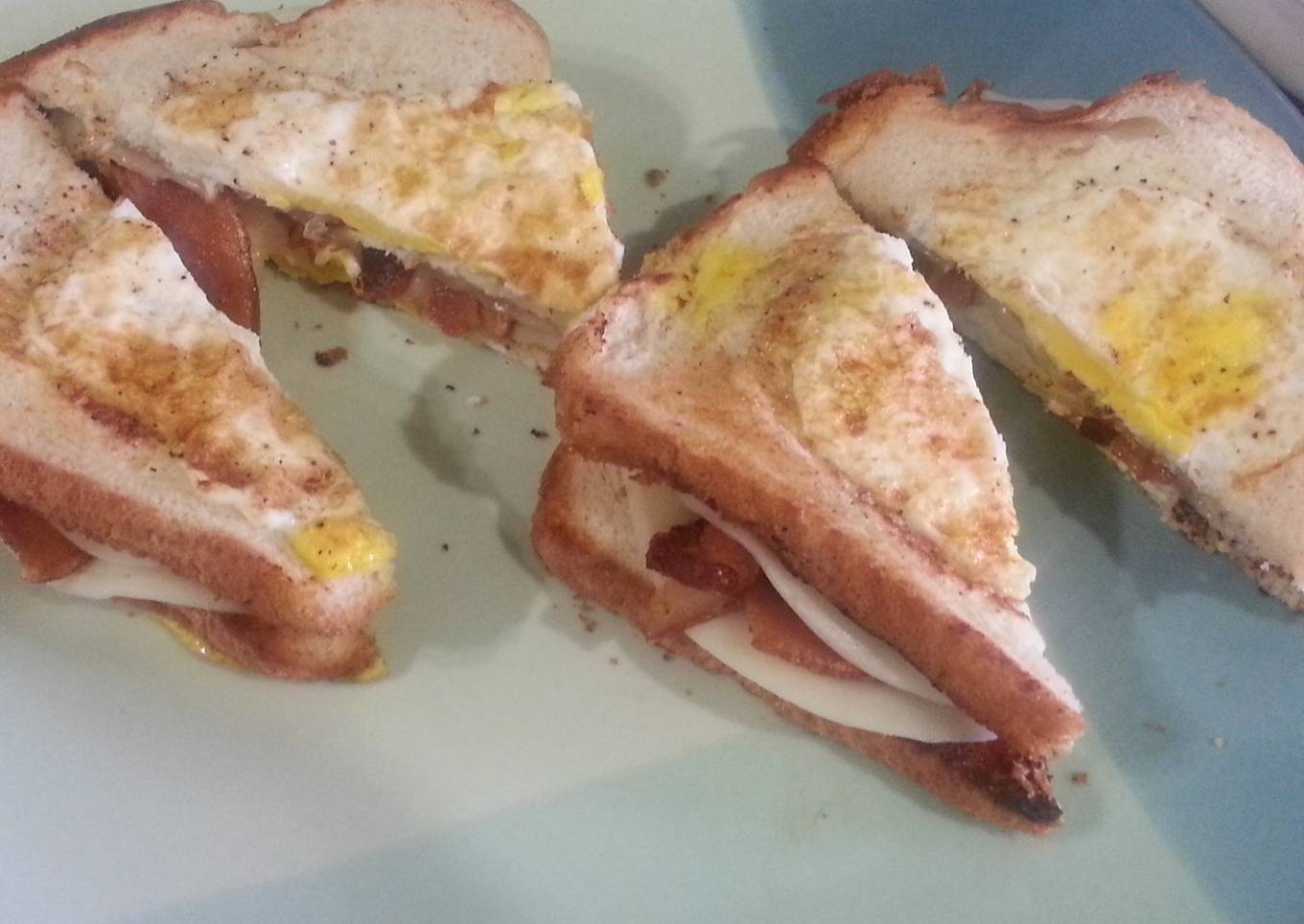 - Remove from skillet. Place cheese on all slices of bread. Place two slices of bacon for each sandwhich. Place remaining bread on top and cut in half. Enjoy!
