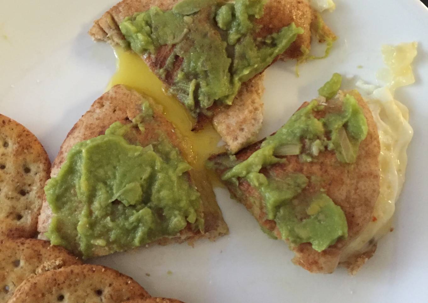 - Take sandwich off pan and spread guacamole on top of sandwich