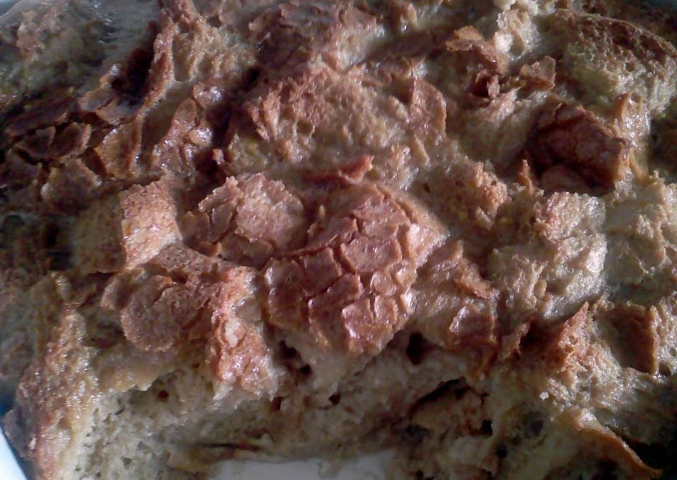 - Tear bread into chunks and spread evenly in pan