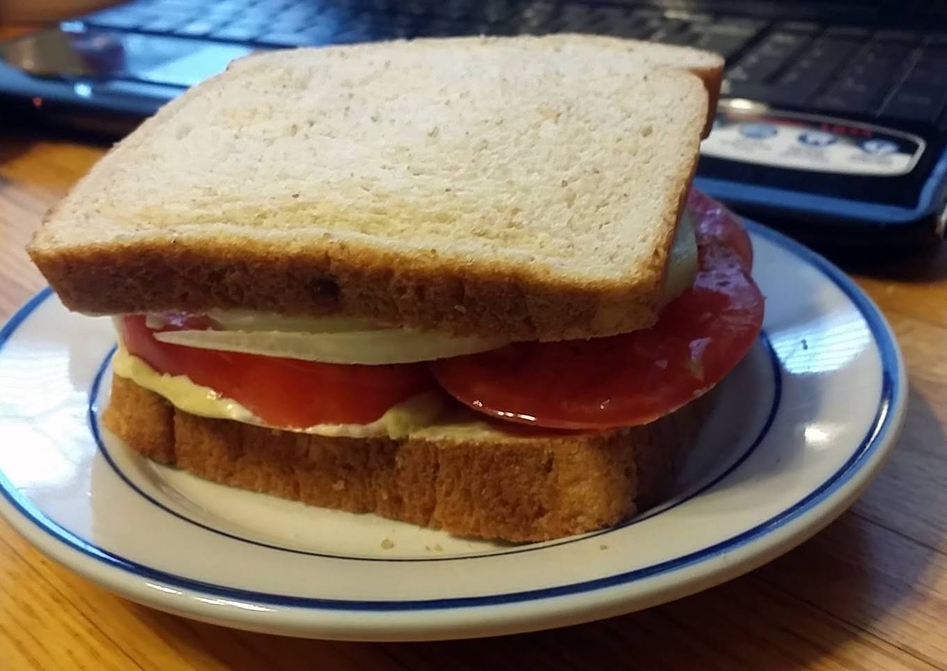 I was making a salad and decided to make a sandwich. I was only going to do tomato but then I thought hmm how about this. I tried it and I loved it. will do this again but next time I am adding more spice!!