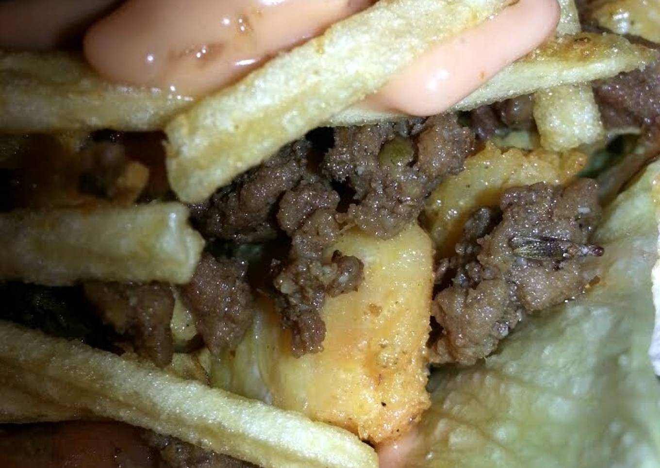 - For the Mayo Ketchup sauce, chop up your garlic cloves and mix together with about 3 tablespoons of ketchup and 3 tablespoons of mayonnaise. Sauce should come out pink. (If too garlicky you can add more ketchup and mayo)