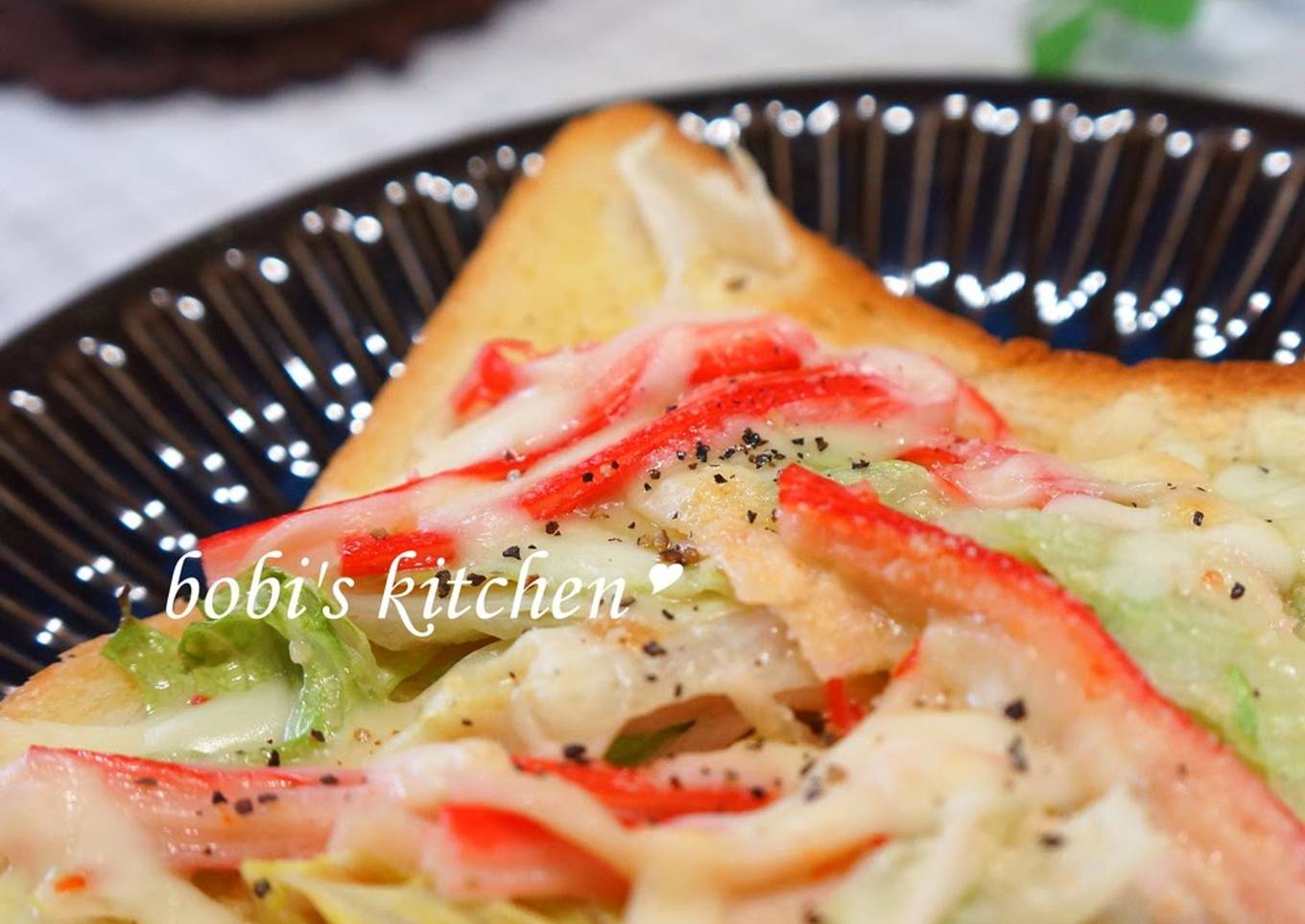 I had leftover lettuce and crab stick salad, so I used it to make toast.