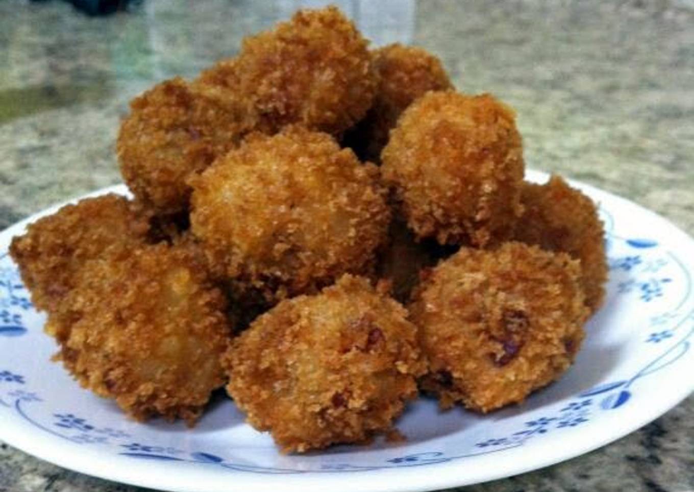 - Roll tablespoon of mixture into ball and dip in egg, then roll into breadcrumbs. Repeat with all of mixture.